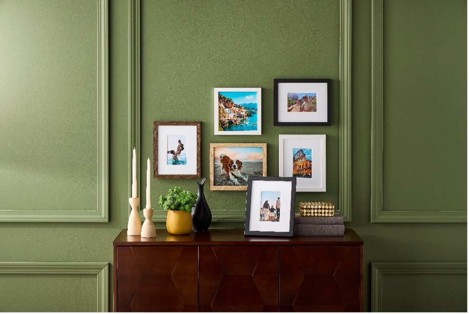 - Customers can choose from two frame sizes and four finishes with or without a mat board.