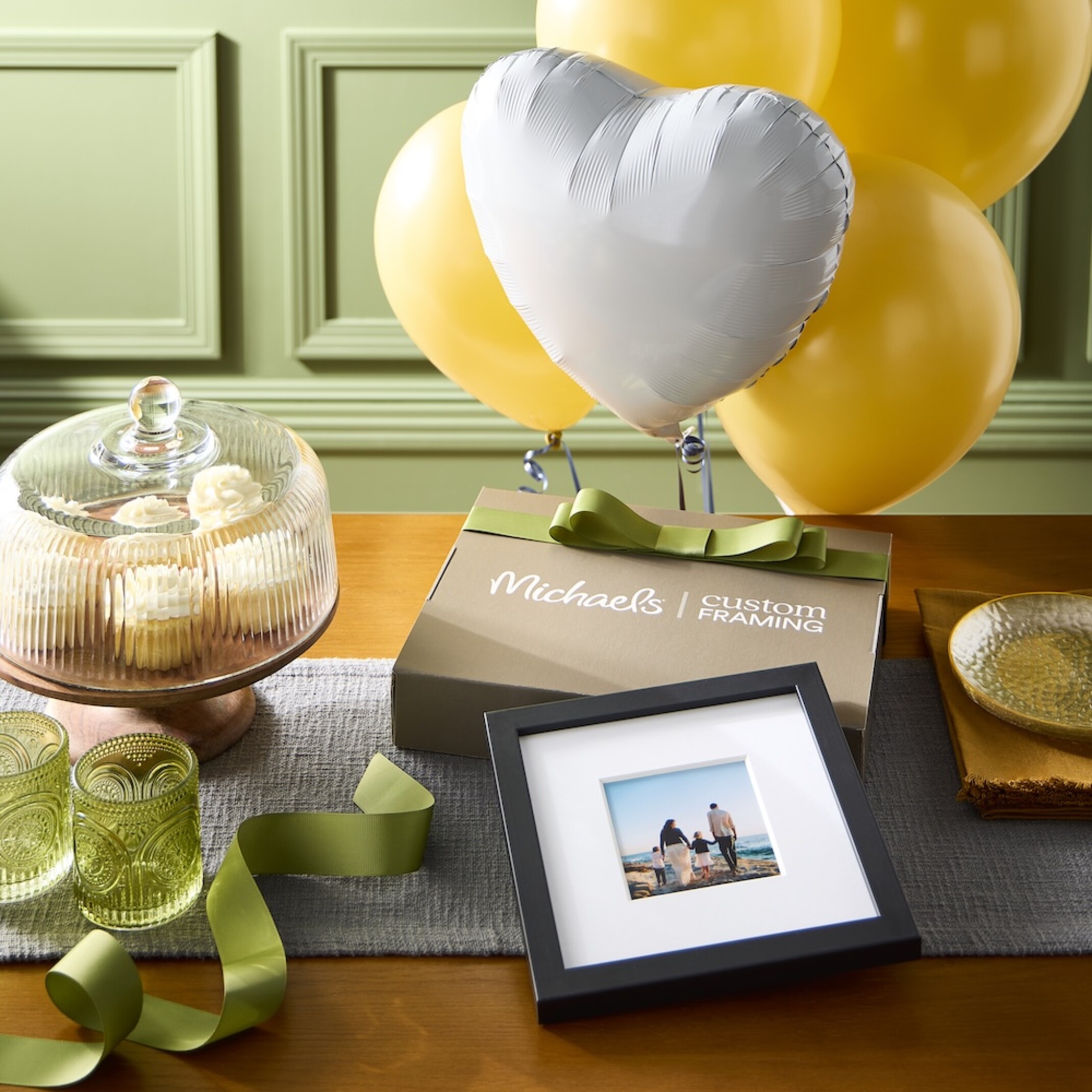 - Design: Work with a Michaels framing expert to choose your size (8x8 or 8x10), finish (Black, White, Brown, or Natural), and optional mat board.