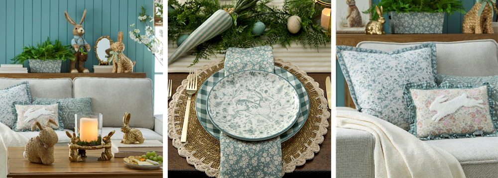 Easter Meadow: For a softer take on the season, Easter Meadow offers a calm, folk-inspired aesthetic with muted tones, gingham patterns, natural textures, and timeless accents. The collection blends cozy charm with elevated details, perfect for layering into existing décor for an effortless spring refresh.